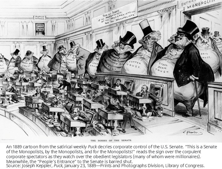 News political cartoons (many childrens’ nursery rhymes today were once political commentaries) made it abundantly clear just how corrupt the political system could be. The linked cartoon is set in the 1889 U.S., but it was typical of all industrialized nations in the latter part of the nineteenth century – and commentary we see right back to the Medieval Renaissance. No need for dark corruption before then, because we were just used to royalty, emperors, and warlords, etc., having supreme control while we suffered and did their bidding. When we finally overthrew ‘Kings and Queens’ and formed democracies of the people, we thought we got rid of the old systems. They never went away. They just transformed themselves into monied hierarchies and gave us the illusion that the people were democratically in charge.